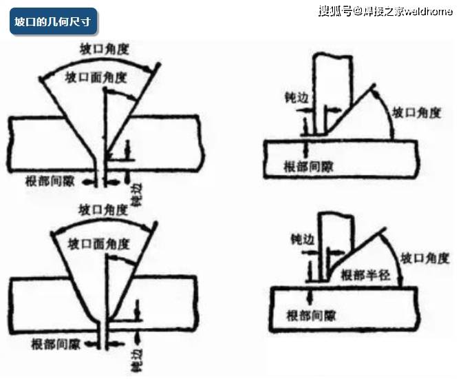 待加工坡口的端面与坡口面之间的夹角叫坡口面角度,两坡口面之间的夹角叫坡口角度。